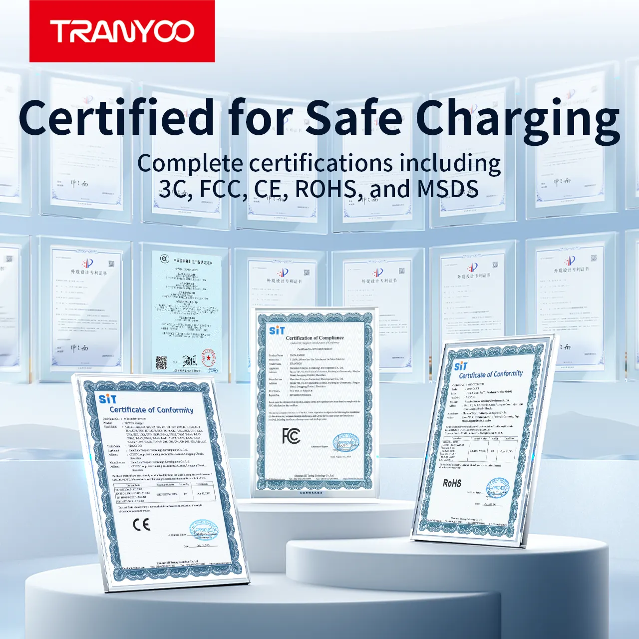 The Tranyoo T-F26 is a compact 10,000mAh magnetic power bank that combines 22.5W fast wired charging with up to 15W wireless (MagSafe-compatible). You can plug in via the Type-C port or use the built-in Type-C braided cable for quick top-ups, both supporting two-way fast charge (up to 18W in, up to 22.5W out). A clear LED display shows remaining power at a glance, while the lanyard/stand design props up your phone for hands-free viewing. Durable ABS+PC construction makes it a practical everyday charger for Android and iPhone users in Bangladesh.