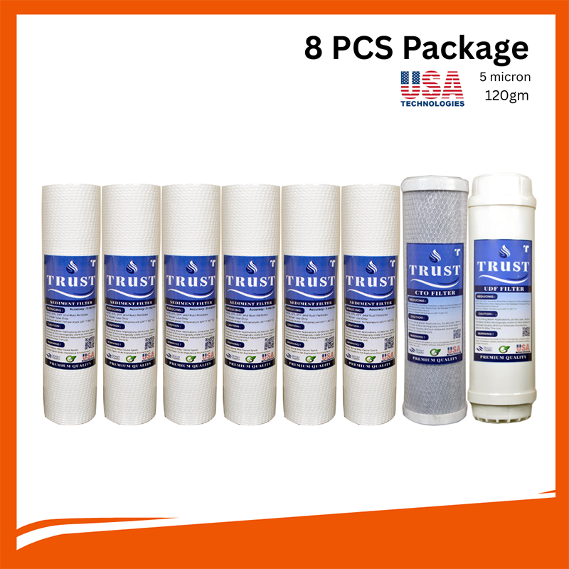 Trust Sediment Filter PP -6 Pcs, CTO Net Carbon-1 Pcs and 10" UDF Box Carbox-1 Pcs ( 8 Pcs Package) Water Filter Cartridge Package