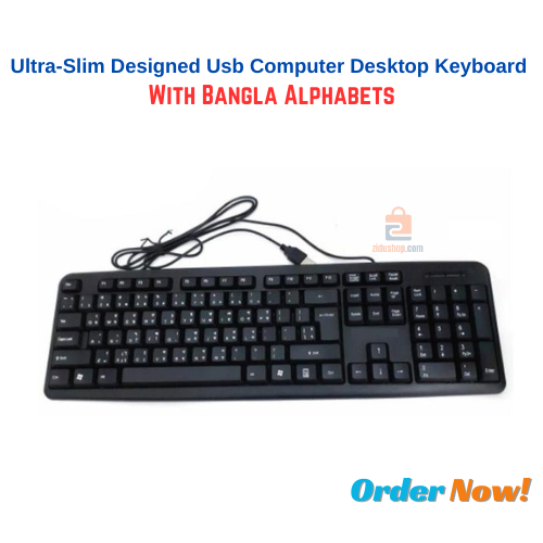 Ultra-Slim Designed Usb Computer Desktop Keyboard With Bangla Alphabets - Sleek And Functional Keyboard For Desktop Use