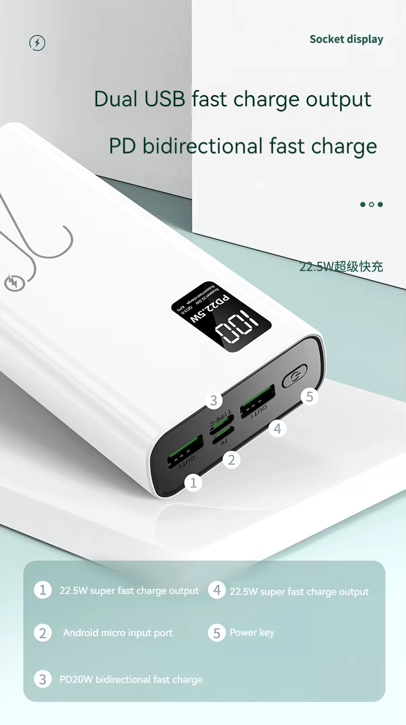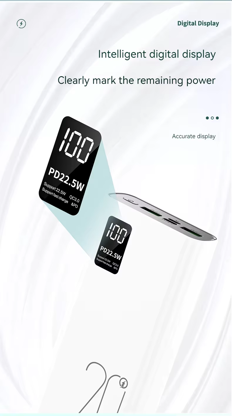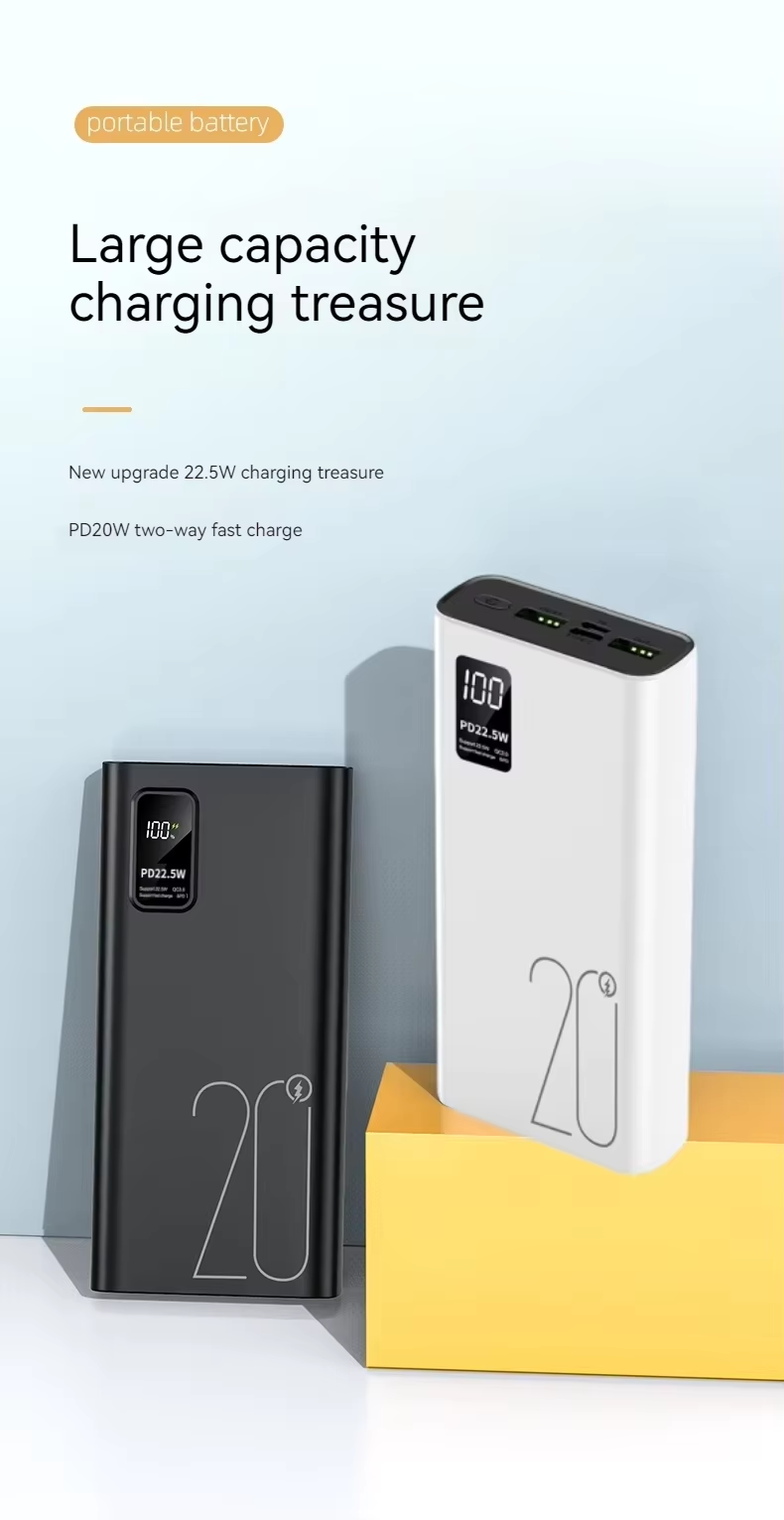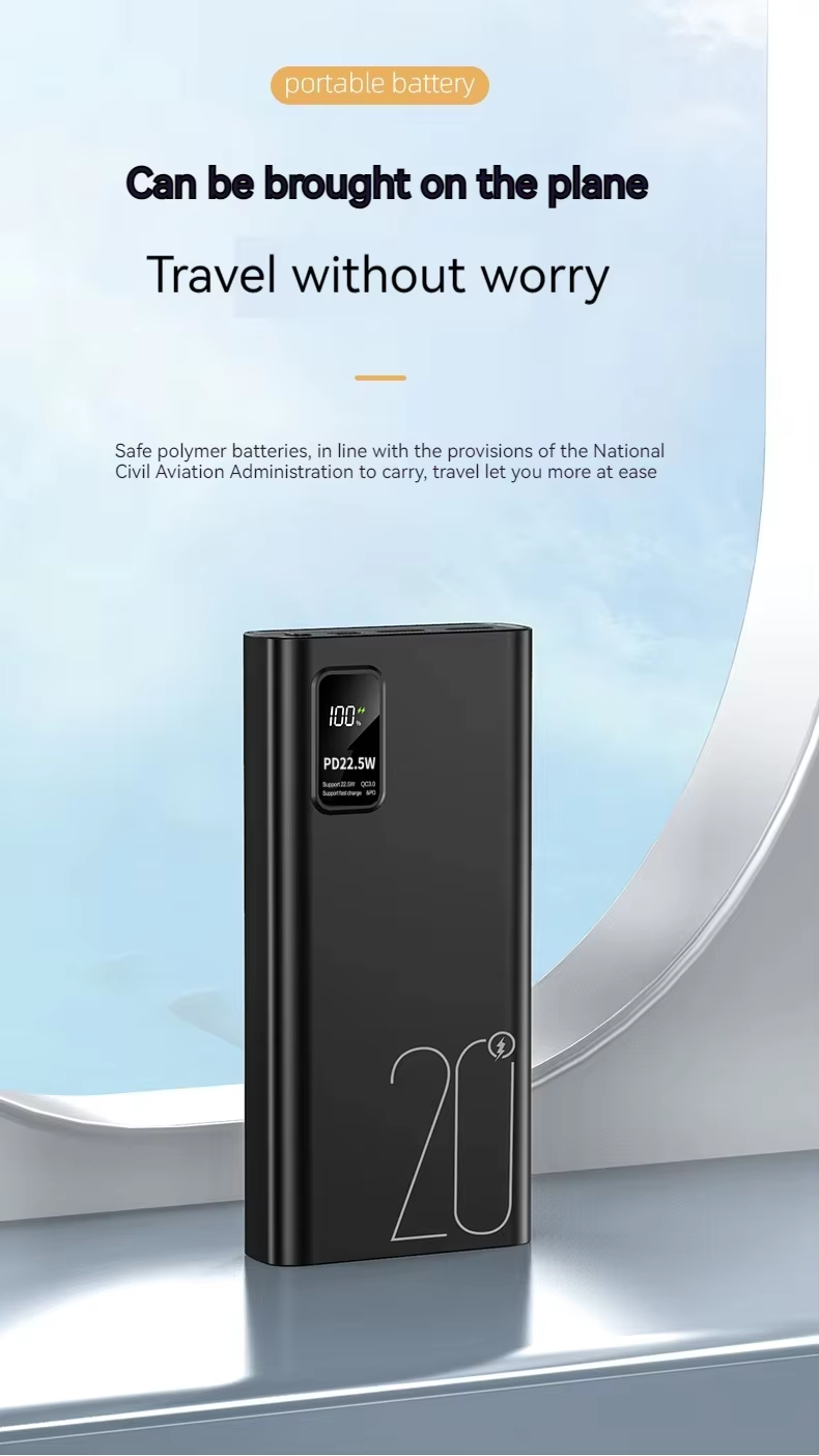 Upmax QC22.5W & PD20W Type-C Output Super Fast Charging 20000mAh Digital Display Power Bank - Black - Black