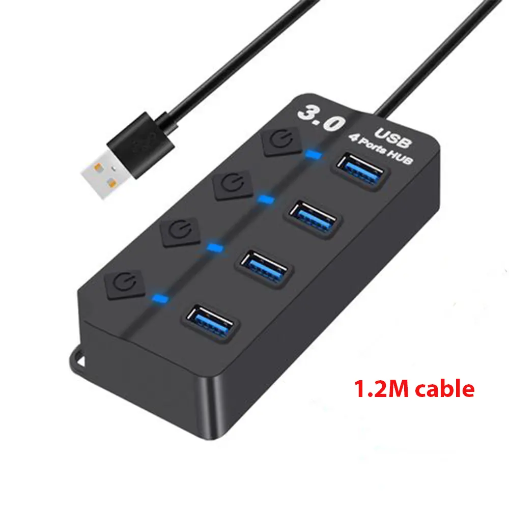 USB HUB 3.0 4port With LED indication and switch on-of Cable 1.2m Black