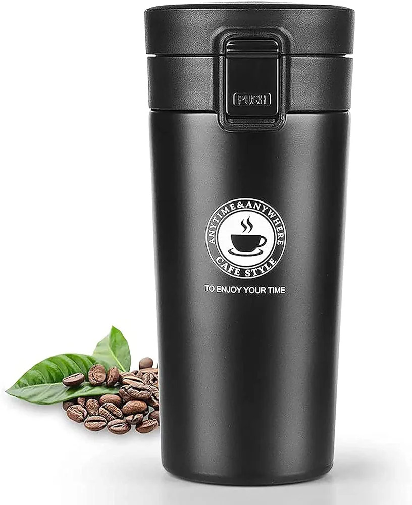 *Vacuum Insulated Stainless Steel Tea & Coffee Travel Mug – Flip-Lid Thermos with Mesh Strainer*