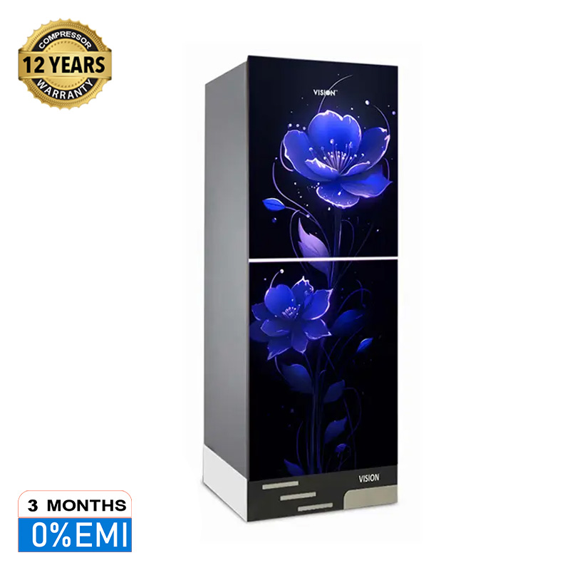 VISION Glass Door Bottom Mount Refrigerator RE-160 Liter Indigo Flower