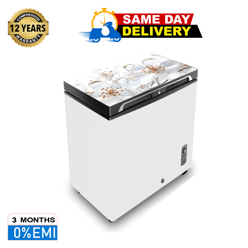 VISION Glass Door Chest Freezer RE-350 Liter White Ice Flower