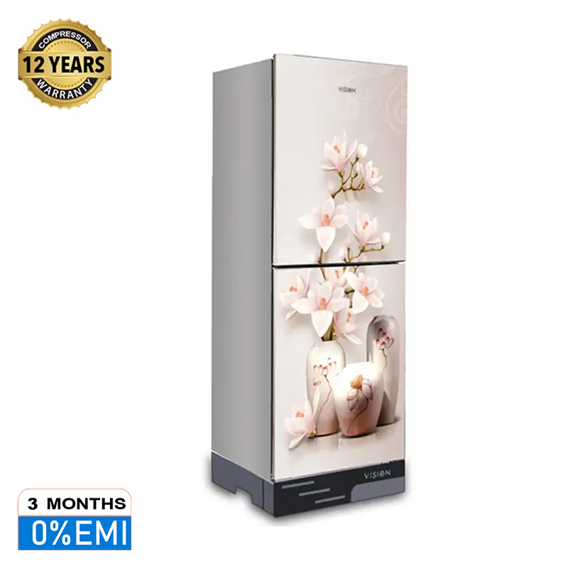 VISION Glass Door Refrigerator RE-142 Liter Vase W Magnolia Flower Top Mount