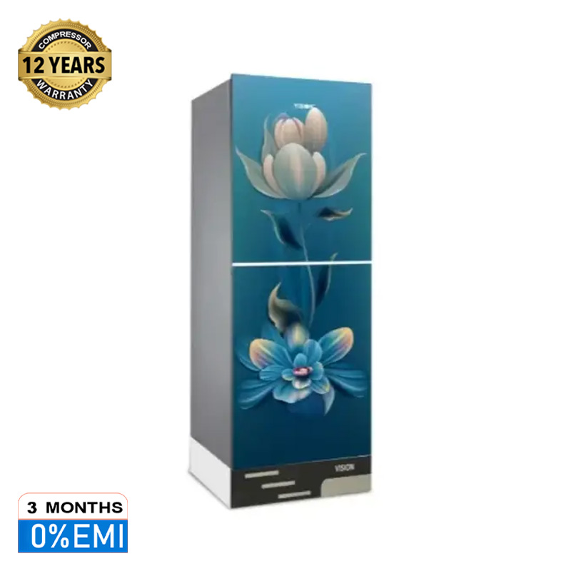 VISION Glass Door Refrigerator RE-150 Liter Sky Blue Flower Top Mount