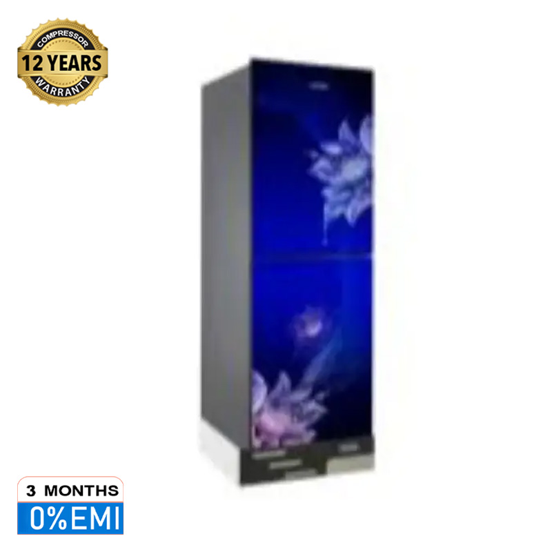 VISION Glass Door Refrigerator RE-180 Liter Digital Blue Flower Top Mount