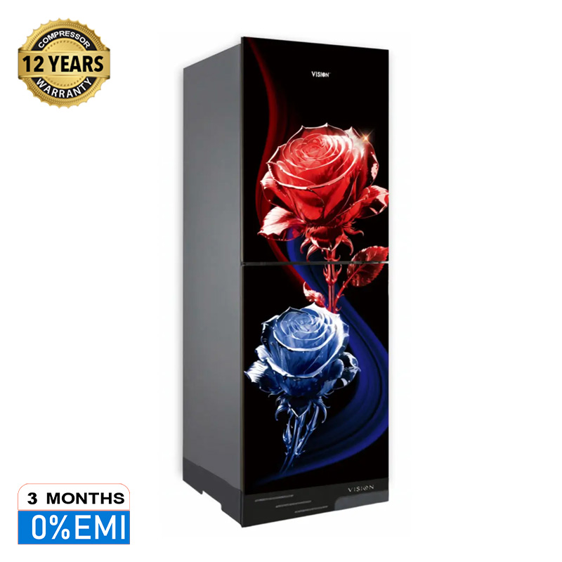 VISION Glass Door Top Mount Refrigerator RE-240 Liter Crystal Rose Flower