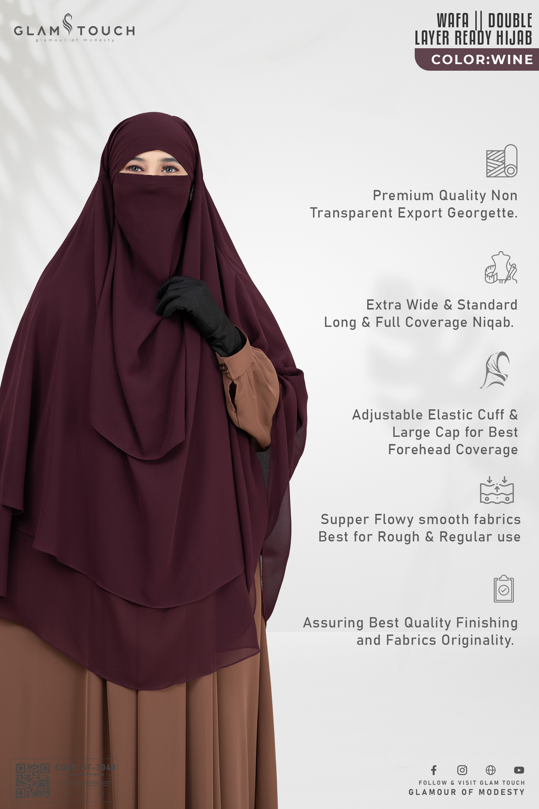 🔘 Comes with a separate niqab for full coverage – Niqab length: 20 inches.