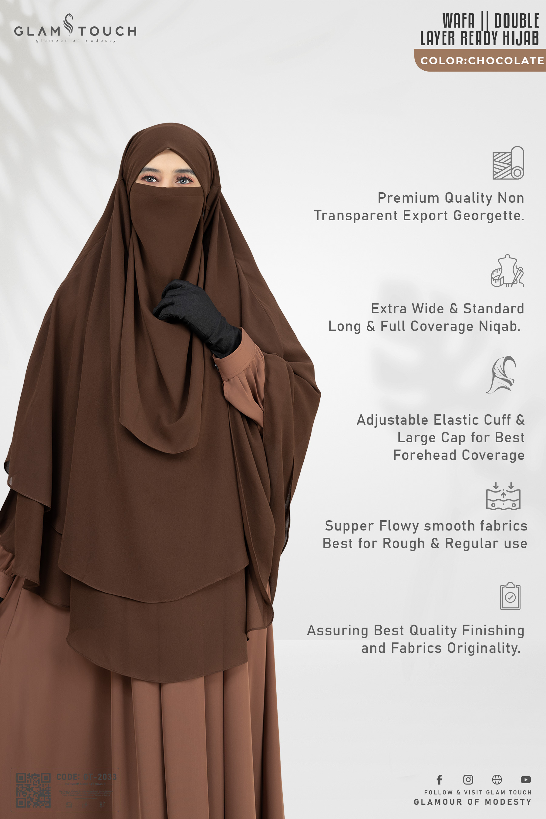 🔘 Comes with a separate niqab for full coverage – Niqab length: 20 inches.