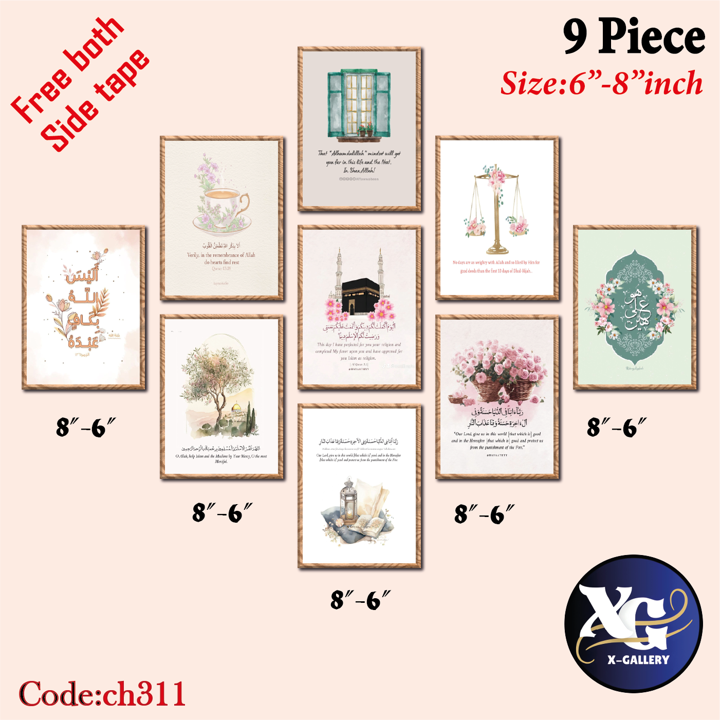 Wall decoration items PVC board poster 9 pcs Isalmic Calligraphy Wallmate Combo Set