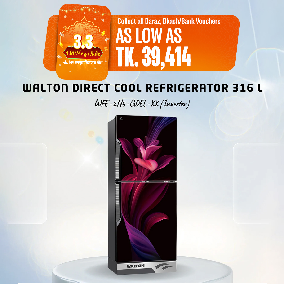 Walton Direct Cool Refrigerator 316 L WFE-2N5-GDEL-XX (Inverter)