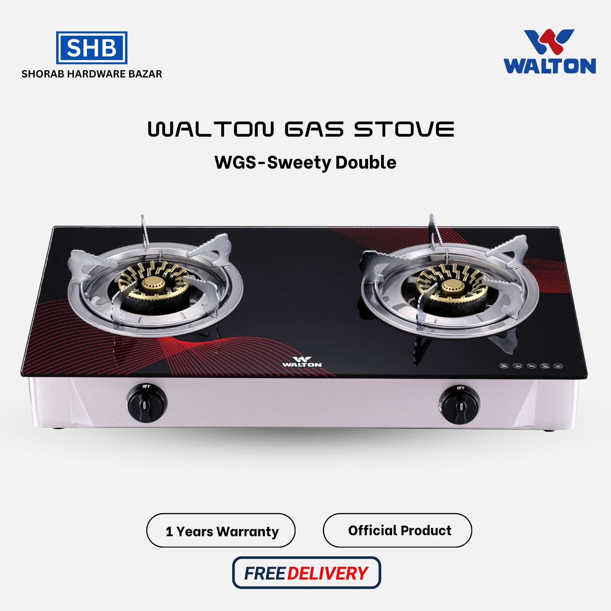 Walton Glass Top Double Burner WGS-Camellia Double (LPG/NG) with Free Delivery (NG)