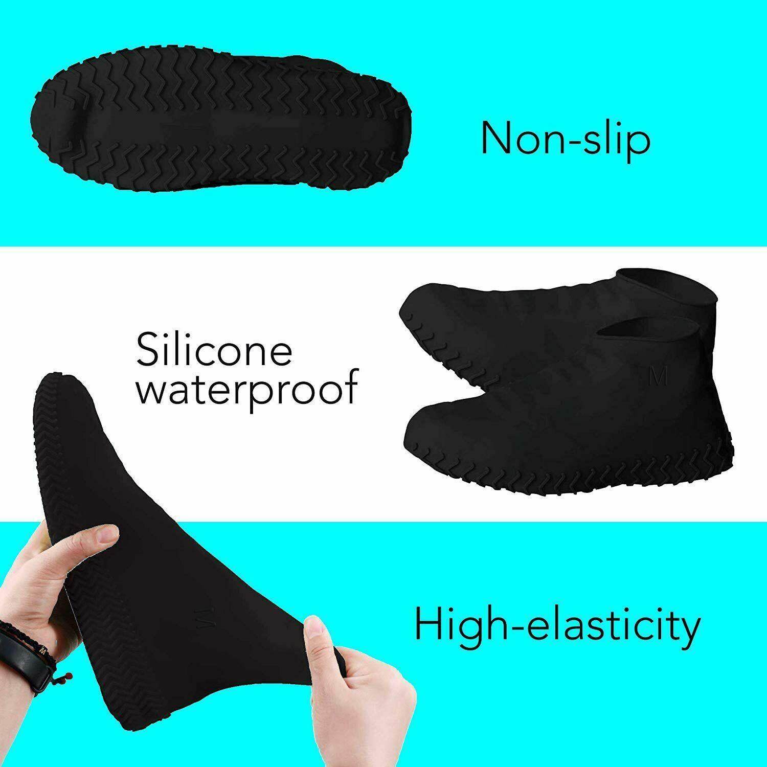 Waterproof Boot Shoe Cover Reusable Non Slip Rain Snow Overshoe Foldable Galoshes Silicone - Black
