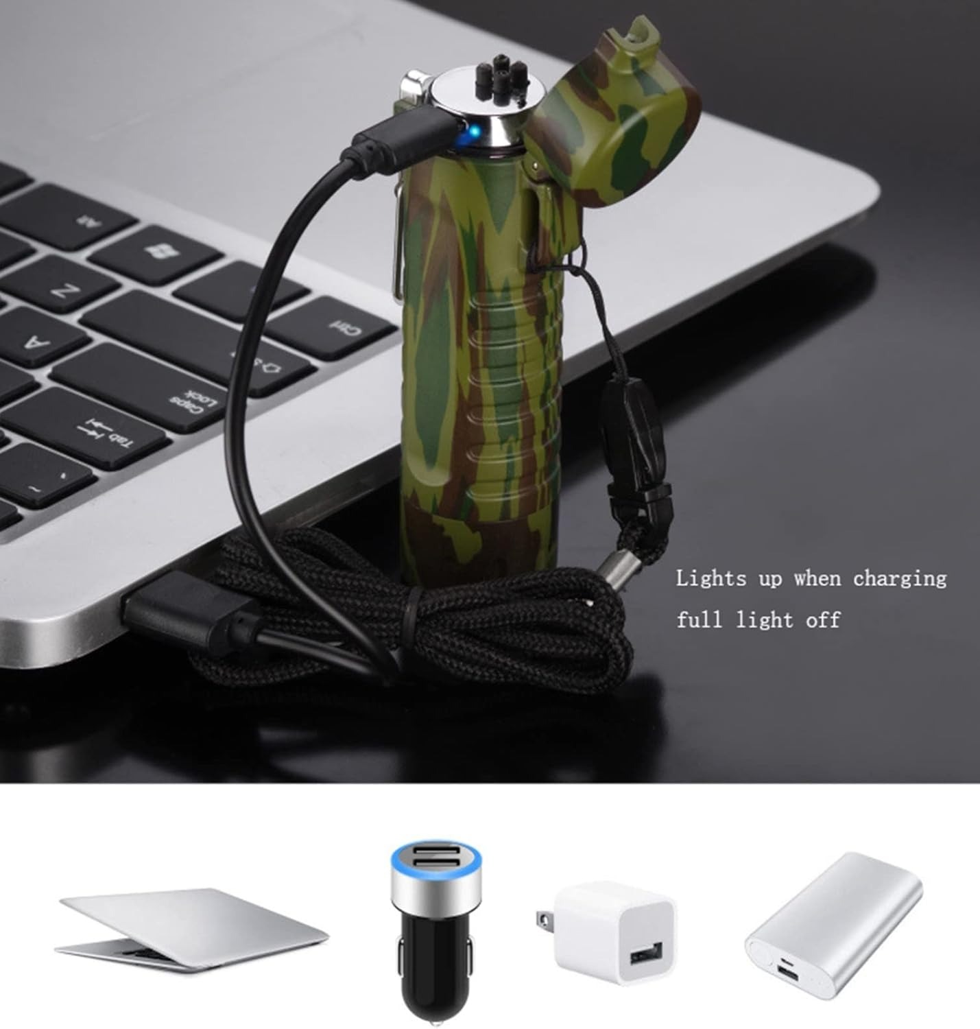 Sealing cover design makes it has good waterproof performance. Our products reach IP56 standard. It can be used under water. This electric lighter can provide simple lighting, perfect for your camping, hiking, trekking or other outdoor activities. Compared with the previous generation of flashlight type lighters, this lighter has been greatly improved in terms of flashlight function.The illumination distance is 20 meters with 3 modes: (high, low, SOS/emergency). Compared to other old-fashioned flashlights, our flashlight lighter body is made of aluminum alloy+ABS, and the upgraded surface treatment is more durable and convenient. 7 seconds automatic power off protection,short circuit protection and leakage protection,windproof arc ignition,ABS+Zinc Alloy,more safe and durable lighter.It is a perfect outdoor lighter,camping fire starter tool,an emergency fire starter tool and more. This lighter is perfect for people who love outdoor activities. It is a perfect gift for your family, friends, relatives, partner and you.