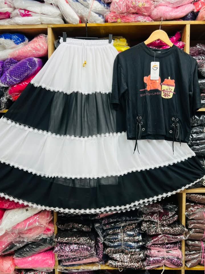 Western Fashion Ladis Stitched Fancy collection Multicolor Tops and Skart Set Fabric Chinigura Georgette for women - Mint