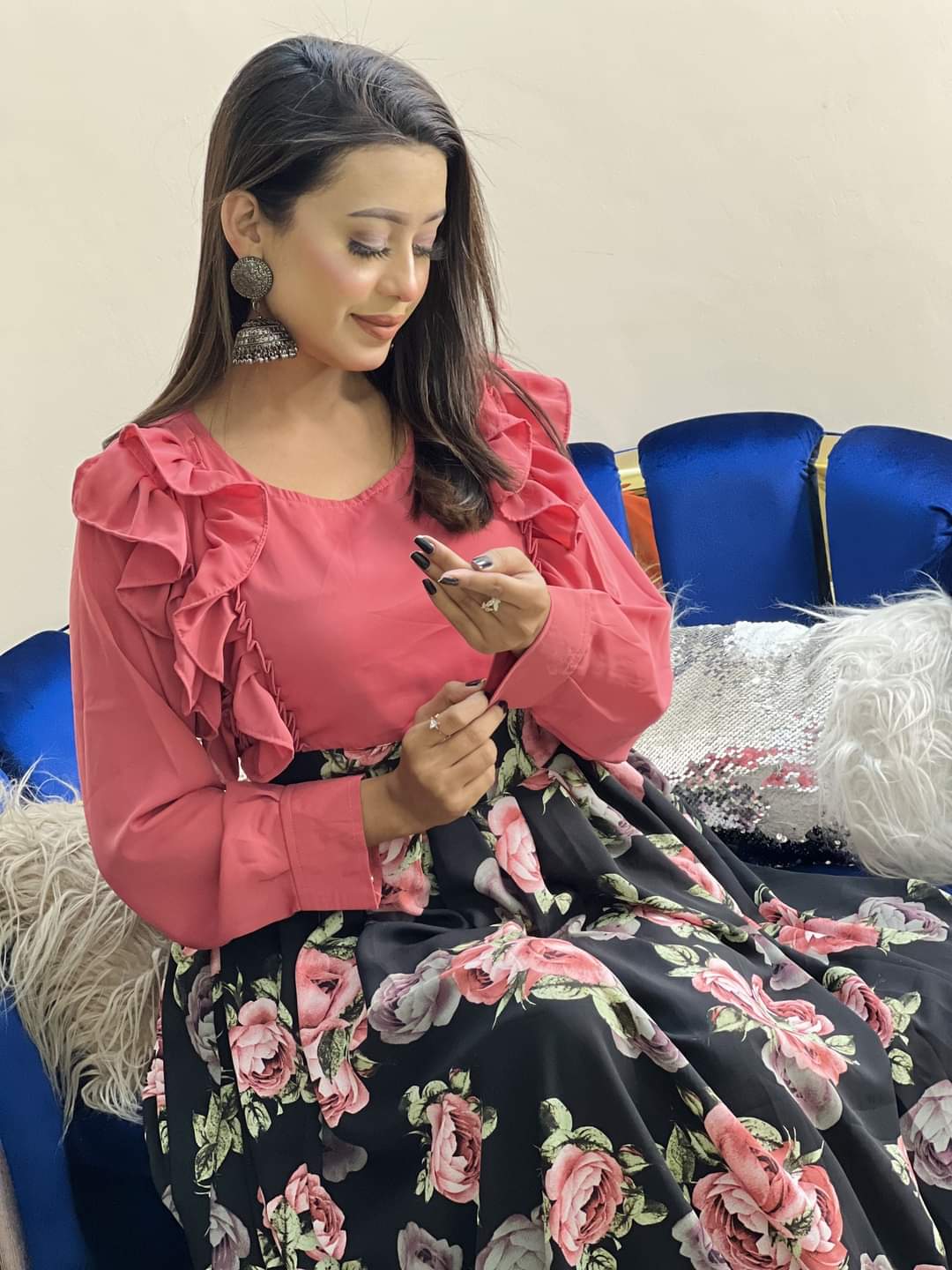 Western Fashion Pink ColorTarkis gawn Fabric-Hitcut Georgette Ladies Shirt for Girls - Pink