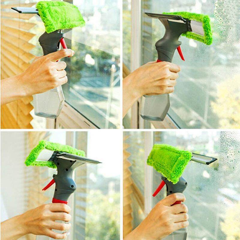 3 in 1 Spray Window Cleaner Wiper Glass Car Rag Microfiber Scraper Broom Clean