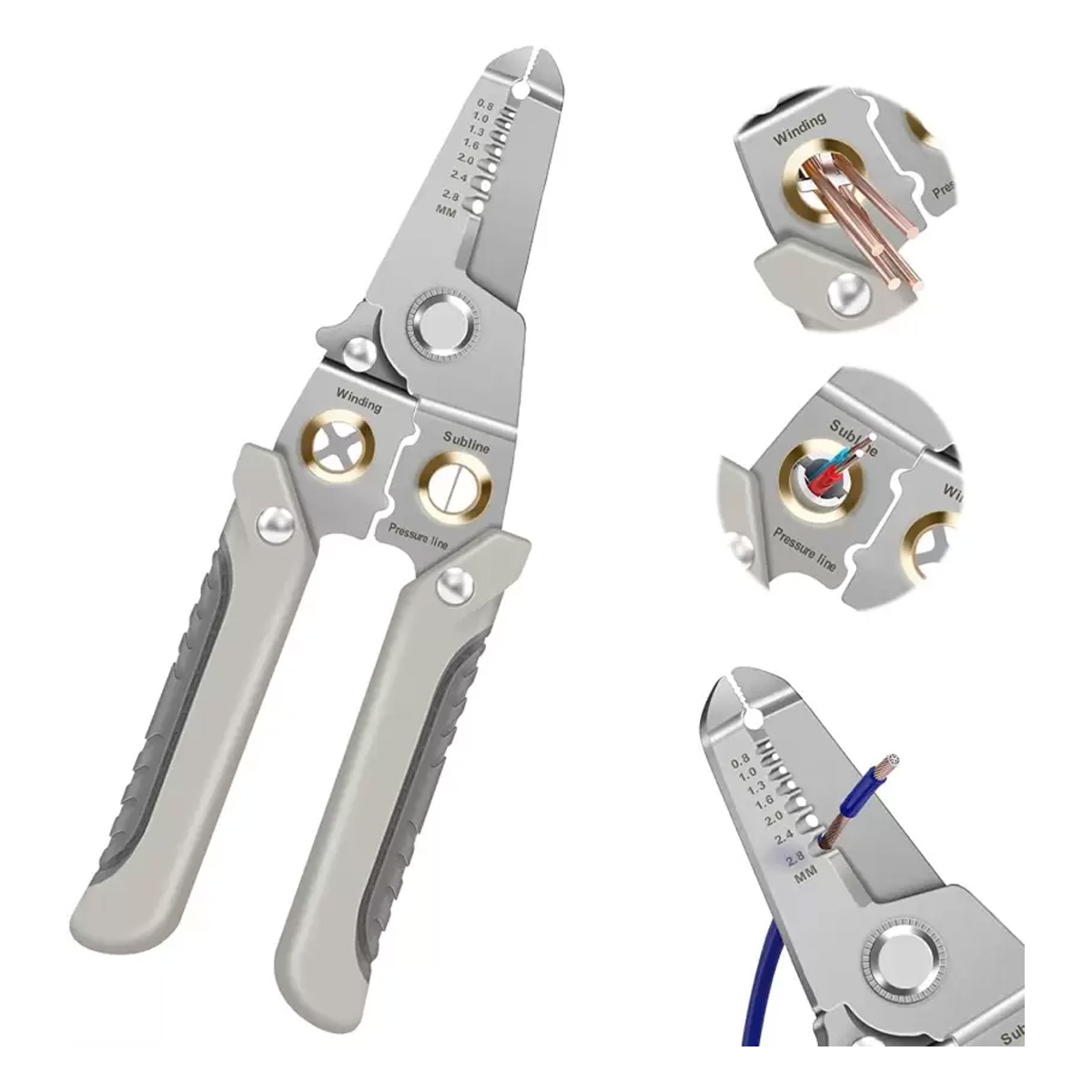 - 【Special Wire Stripper for Electrician】: This wire stripper integrates stripping, splitting, winding, cutting, clamping, and splitting into one, with powerful functions. It saves the operation of frequent tool replacement, which is convenient and quick, and improves work efficiency. The crimping is fast and tight, which is more suitable for electronic and electrician maintenance work.