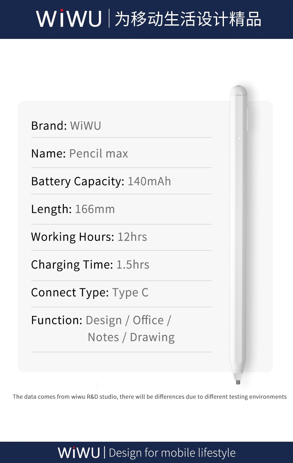 WiWU Pencil Max Magnetic Capacitive Pen Sensitive Touch Stylus Pen magnetic design