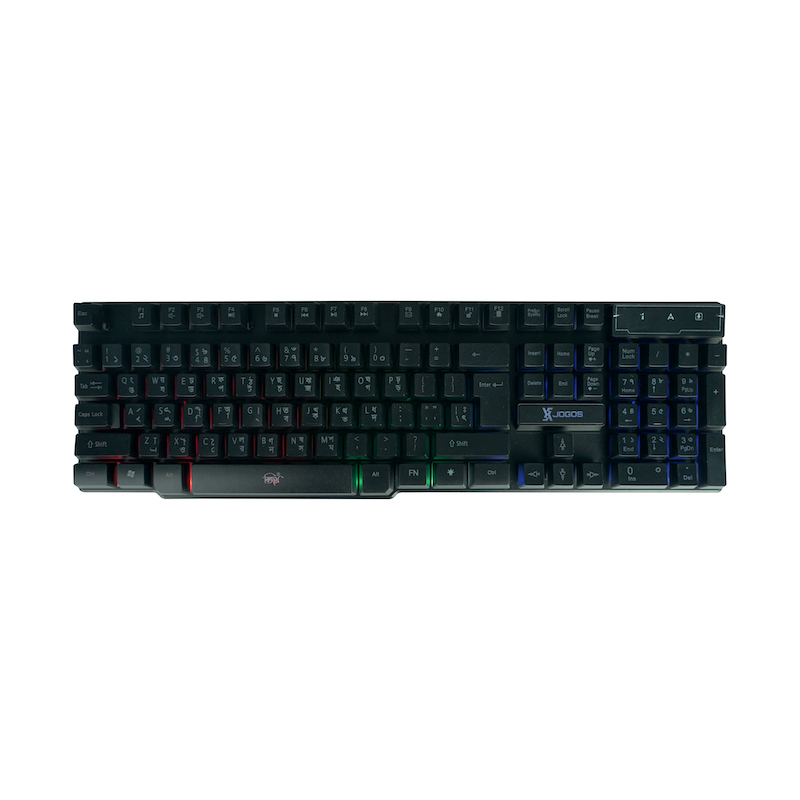 XTREME KB72R(JOGOS) RGB Backlit Rainbow USB Gaming Keyboard With Bangla. 7 BACKLIGHTING MODES, Suspended Keycap, Comfortable Feel, Business Office, HD Character, Game Equipment,Ergonomic Design, Product Dimensions 430.7 x 131 x 30 mm. Number Of keys : 104, Key Life: 5,000,000 times, Multimedia Key,Operating System: Windows 7, Windows 10, 11.warranty 1year
