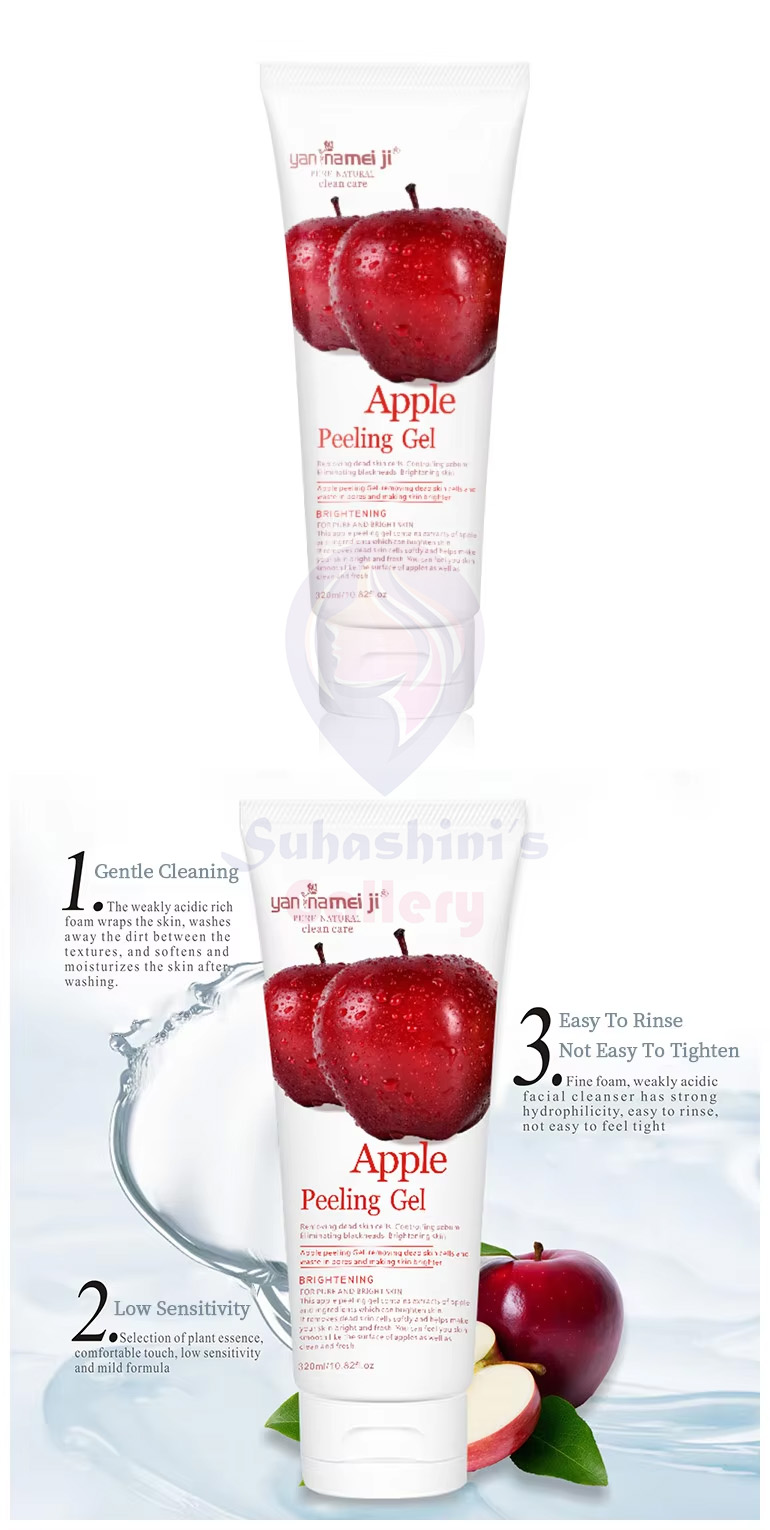 Yan Namei Ji Apple Peeling Gel is an exfoliating gel designed to gently remove dead skin cells, revealing smoother and brighter skin. Enriched with apple extract, this gel provides nourishment and hydration while promoting a youthful glow. It effectively unclogs pores, leaving your skin feeling refreshed and revitalized. Suitable for all skin types, this 320ml bottle is perfect for regular use to maintain a healthy complexion.