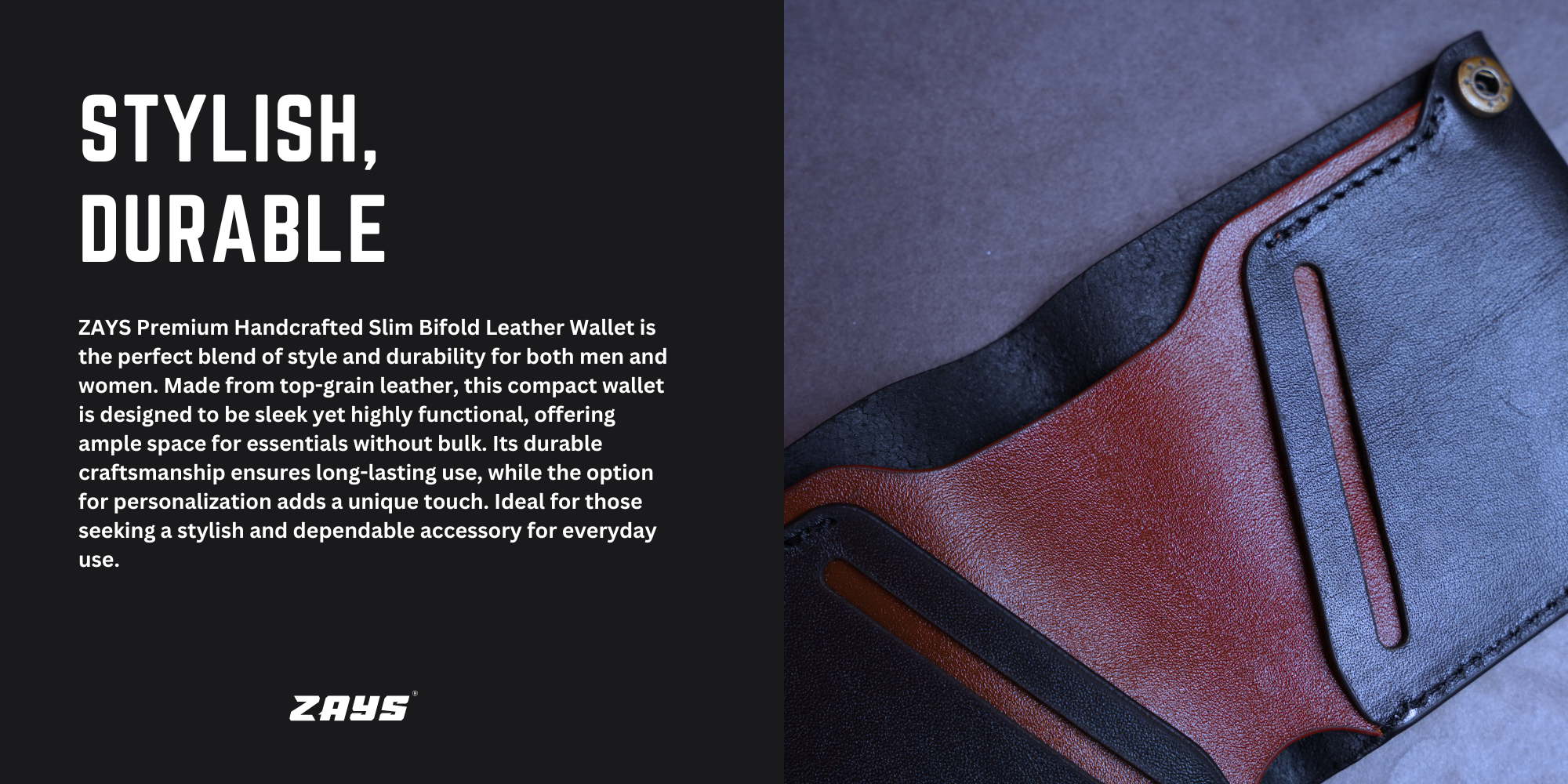 Zays Handcrafted Premium Leather Bifold Wallet – Slim, Durable & Stylish for Men & Women
